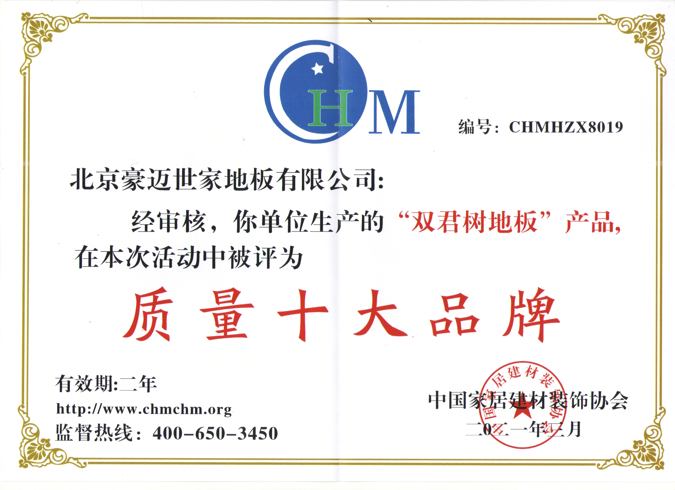 - 双君树三层实木地板荣获“中国十大地热地板品牌”奖项